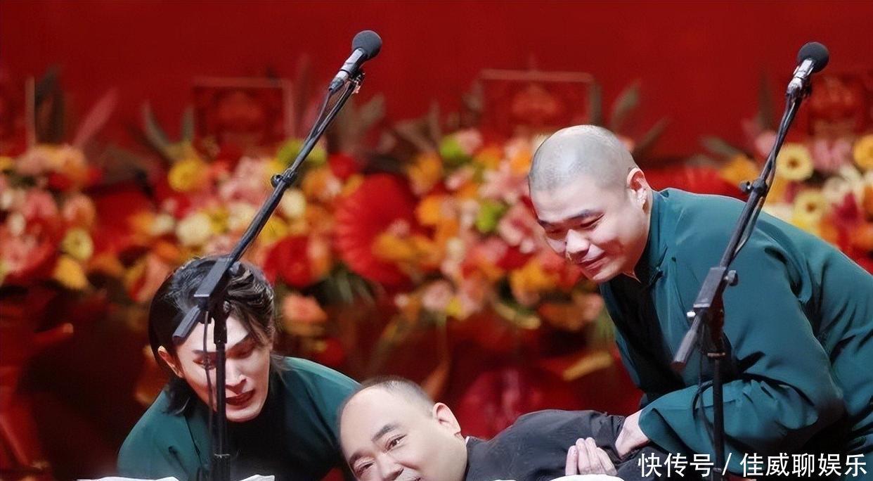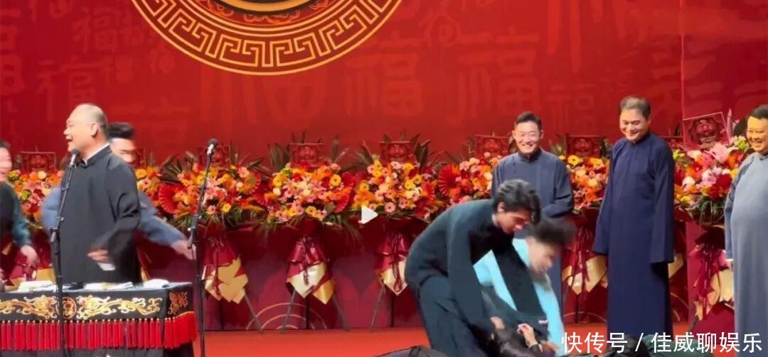 再次登台时,侯震携徒弟庄子建一同表演了个小段子。郭德纲让庄子建来一个表演,庄子建说,得跟师父侯震一块儿上,毕竟打仗还得父子齐心呢。说完,侯震也跟着上了台。要演啥呀?侯震先开始吹嘘,说自己有真本事,别人都不敢跟他搭档,也就庄子建有这个胆儿。找准位置站定,侯震便施展起绝活,手指向徒弟庄子建,嘴里喊了声“皮卡丘”,庄子建立马就倒地了,还在台上不停地抽动。要是就这师徒俩来玩,估计也就这点儿乐子了。然后,关九海去拉自己搭档,也装作被电到摔地上。孟鹤堂挺机灵,也凑过来一起玩。嘿,这一玩可不得了,孙九芳、秦霄贤、张鹤伦、张九南、烧饼他们几个一股脑儿全冲上来了,台上躺倒一片。